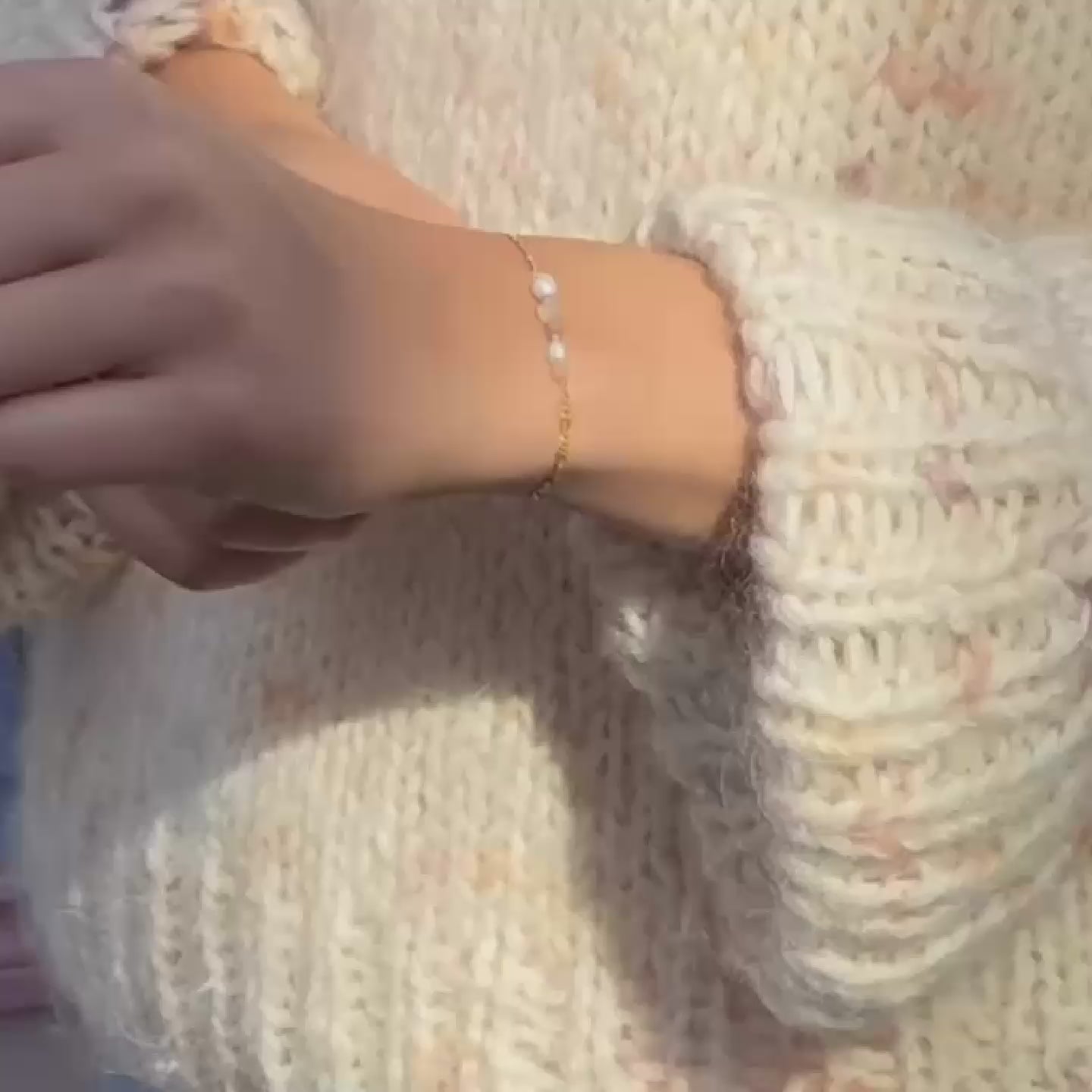 Frida armbåndet består af en figarokæde, som er brudt af en række perler af naturlige ferskvandsperler, jade, prehnit og argentinsk rhodocrosit. Armbåndet er rigtigt fint at bære for sig selv men kan også sagtens indgå i et mix med dine andre armbånd.