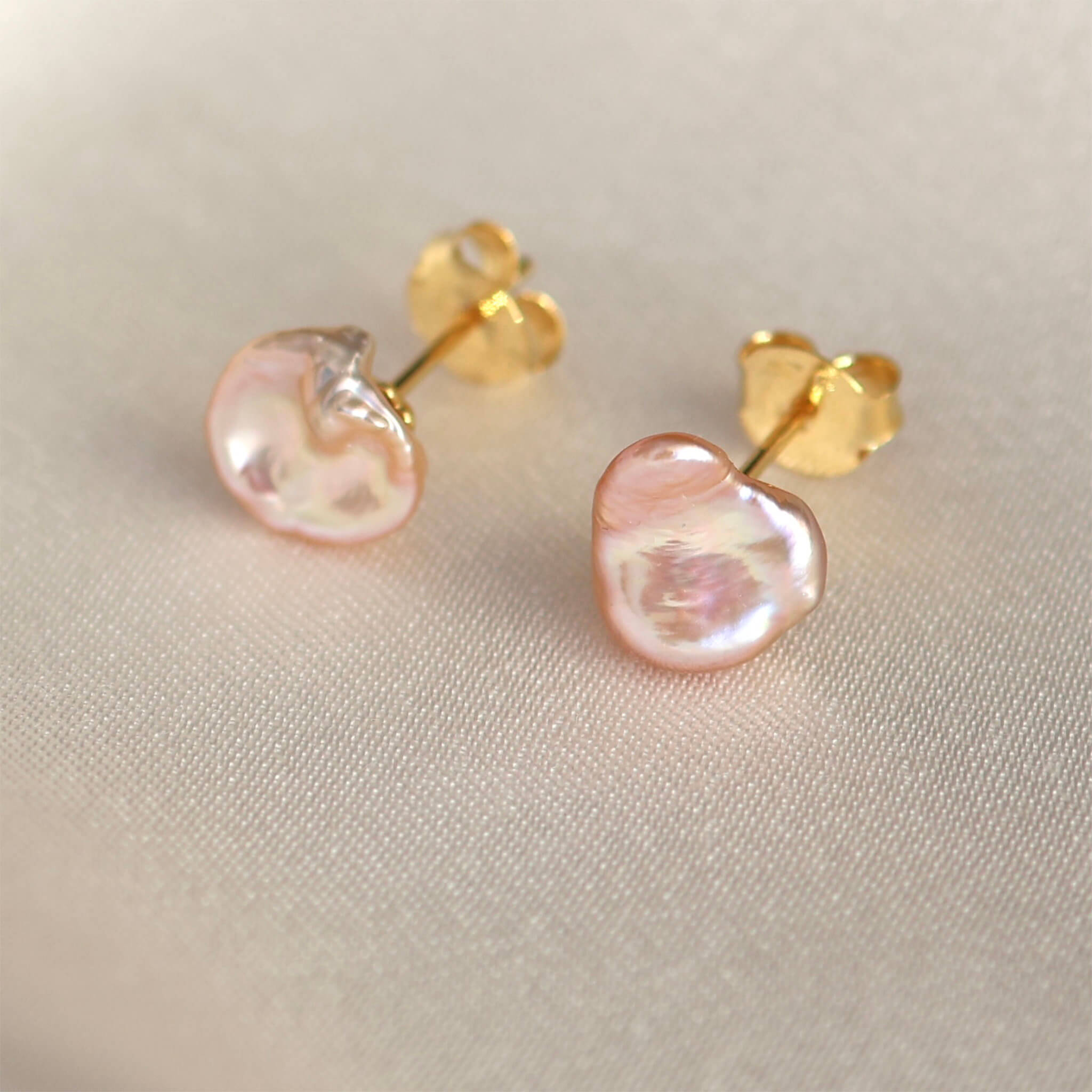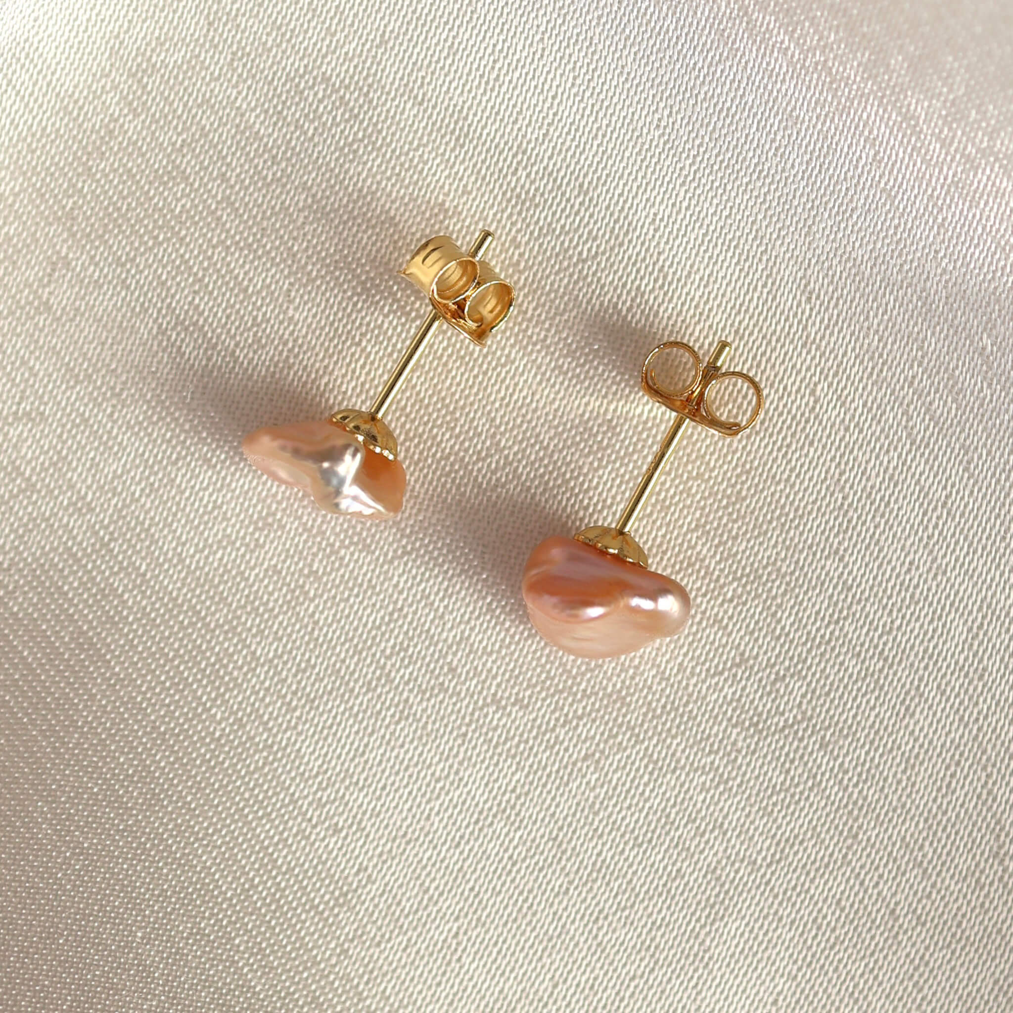 Disse ørestikker er designet med lyserøde ferskvandsperler i smukke organiske former. Øreringene har et fortryllende udtryk og er noget helt særligt.