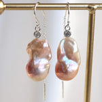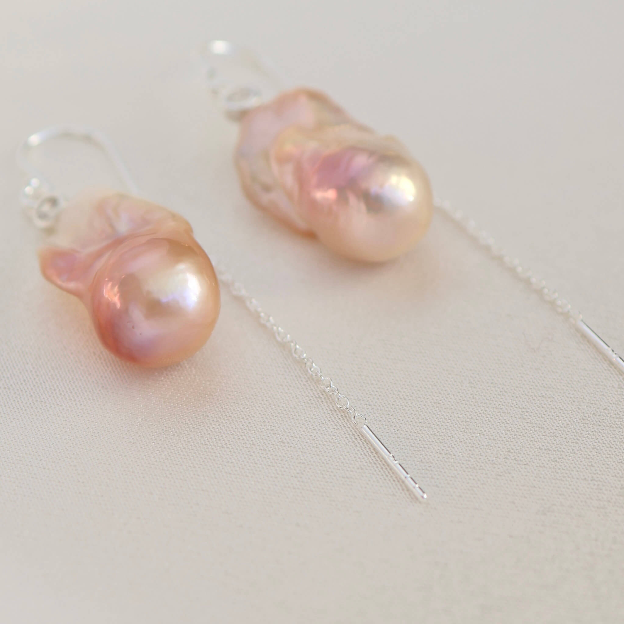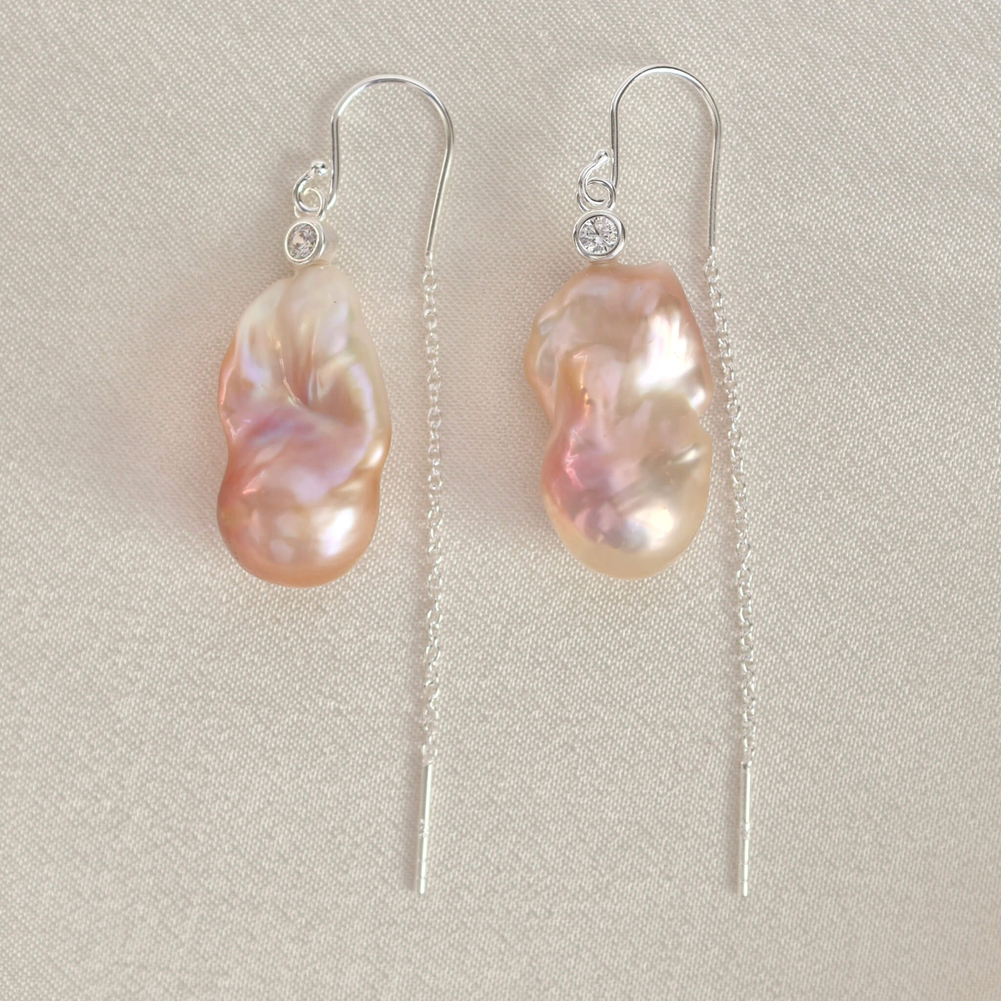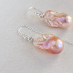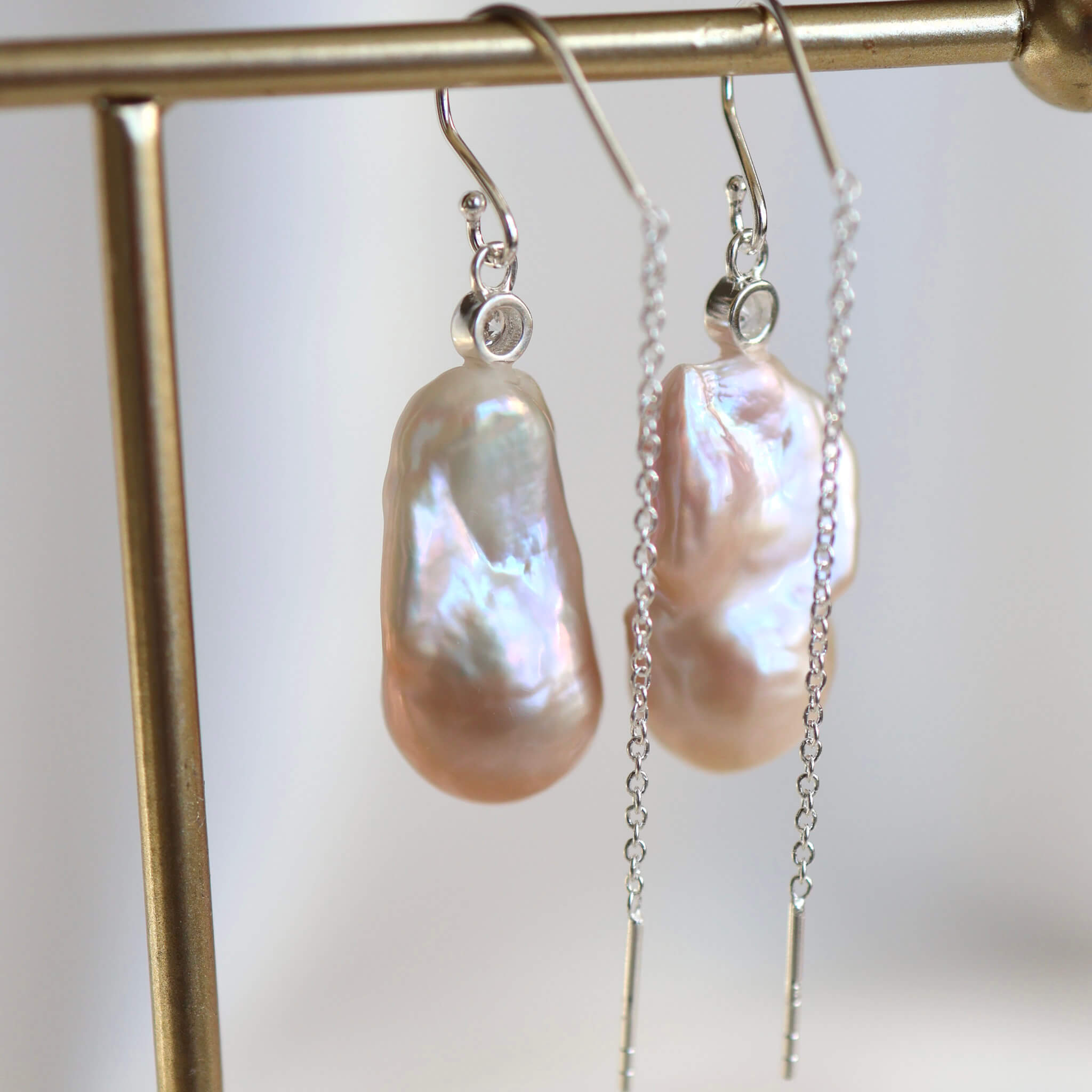 Et par vidunderlige ørekroge med kæde bagerst og store barok ferskvandsperler, der changerer i lyserøde nuancer. De unikke barokperler er prydet med en kubisk zirkonia på toppen, som giver dem et særdeles eksklusivt udtryk.